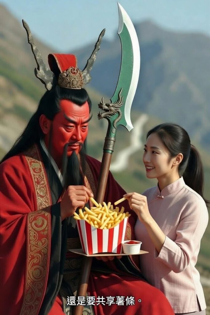 好友之前夢到我們另一位前幾年走的朋友,夢中說她吃素養生十多年,但突然決定要開始吃薯條。好友在夢中問為何,她回答說因為關公也吃薯條(蛤?)。後來我們一起幫忙解夢,說她應該要買一包薯條去行天宮一趟,擲筊問一下關公。她年後就真的買了包薯條去行天宮一趟。
